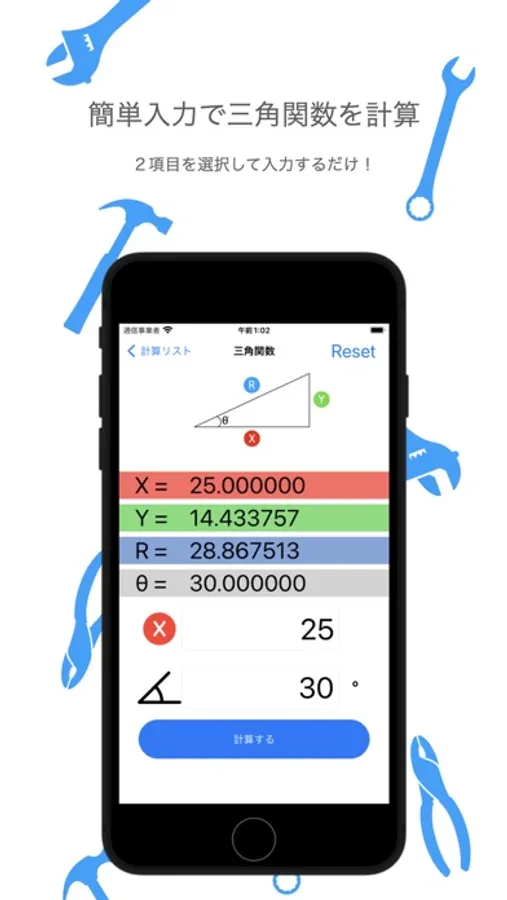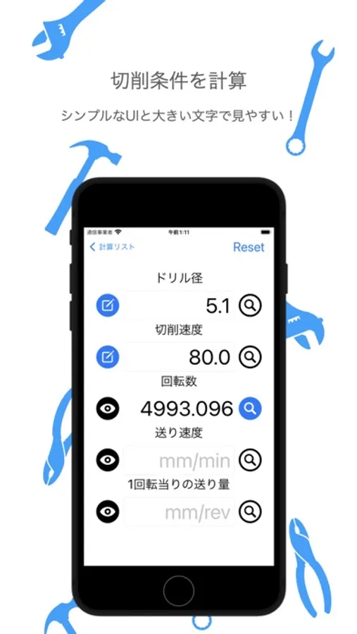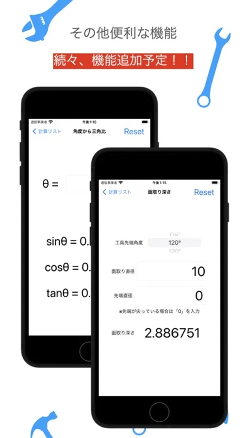 このアプリは、機械加工に必要な計算をワンタッチで行える便利なツールです。切削条件や三角関数を瞬時に計算し、加工時間や精度を向上させます。