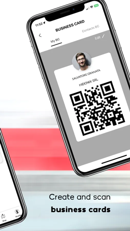 - create your business card and collect others of exhibitors or visitors via QR Code