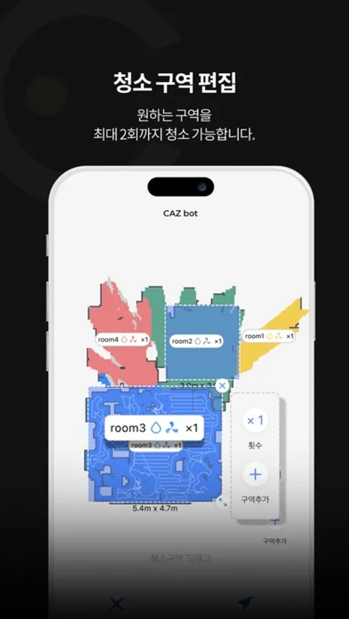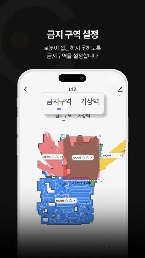 2. 청소 금지구역 설정 : 원하지 않는 구역은 청소하지 않도록 설정하여 효율적인 청소를 할 수 있습니다.