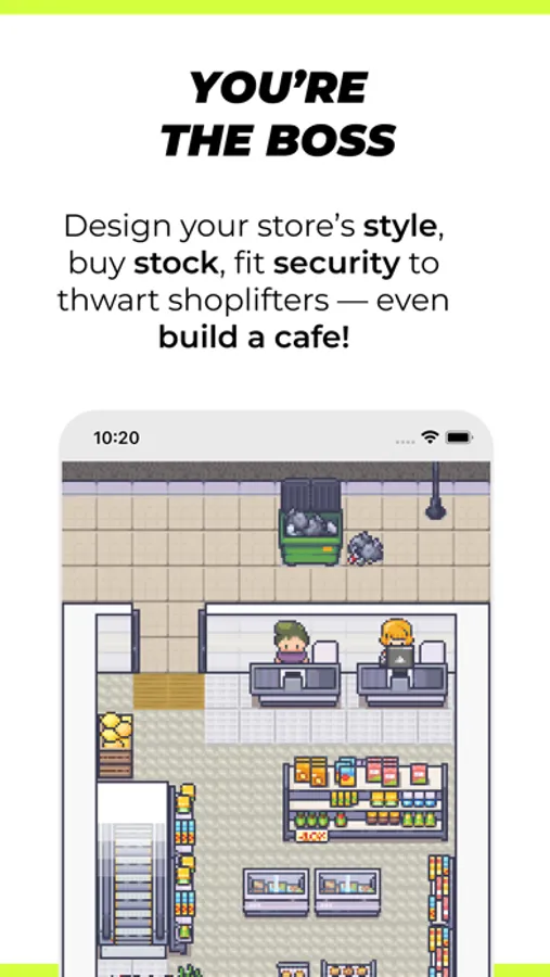 Design your store's style, buy the right stock, fit security systems to thwart shoplifters — even build a cafe!
