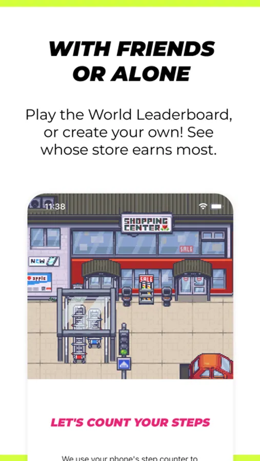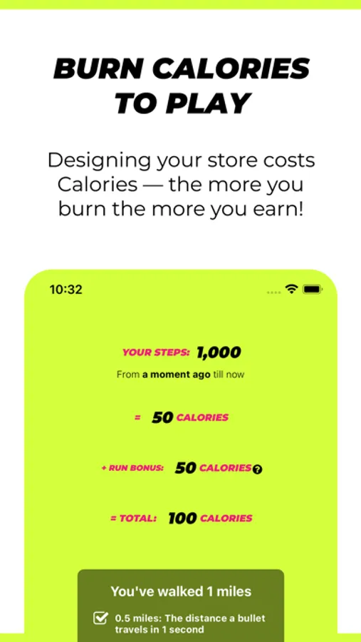 But forget using regular cash. Buying things in this game costs calories — the more you burn the more you can buy. All using your phone's step counter!