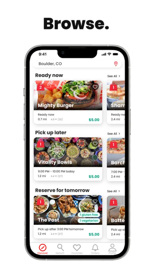 We partner with the best restaurants, bakeries, cafes, and grocers in your neighborhood to offer their perfectly good unsold food in ready-to-eat meal sized portions… what we call a “goodie bag” :) Make sure your notifications are turned on so we can let you know when goodie bags become available!