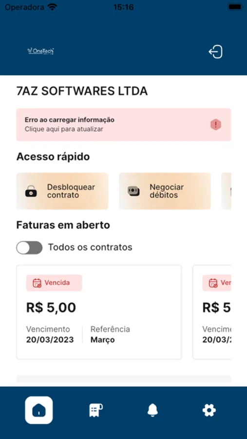Aplicativo para acessar o serviço de atendimento ao consumidor da OneTech.