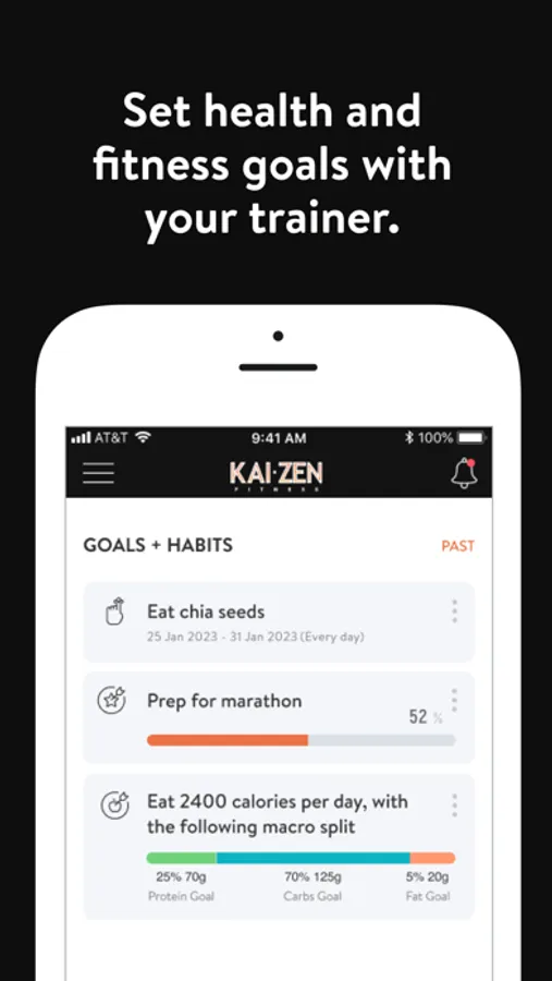 With the Kaizen Fitness App, you will have access to workout programs designed specifically to help you reach your fitness and health goals! You can follow & track your workouts, your nutrition, your lifestyle habits, measurements and results–all with the help of your coach.