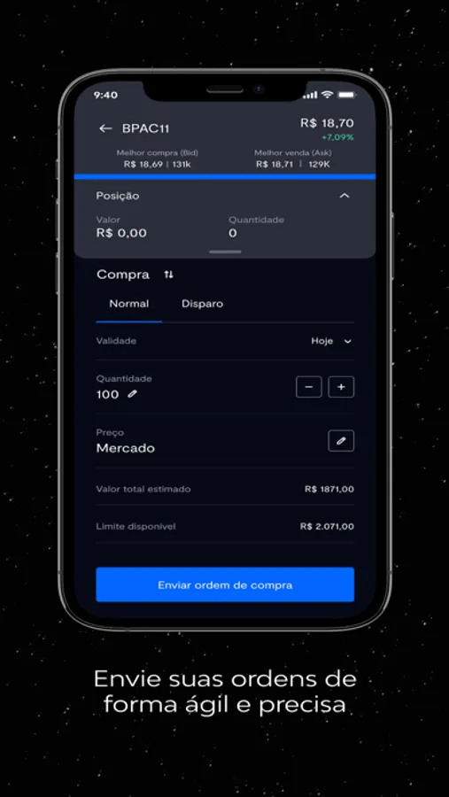 - Boletas de operações para o envio de ordens ao mercado, desde as mais tradicionais (compra e venda) até as ordens de stop com preços específicos de disparo;