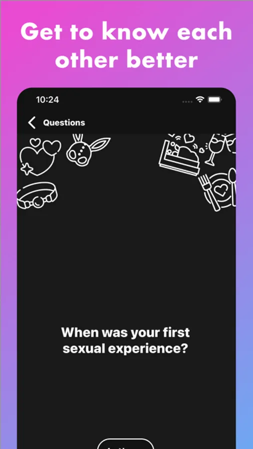 - Intimate questions to get to know each other better. To improve your understanding of your partner and show your attention to detail, we recommend asking intimate questions gradually over time.