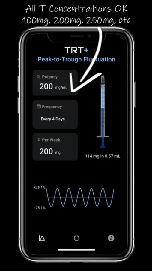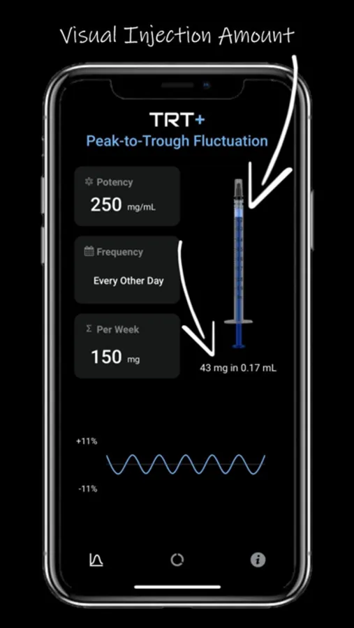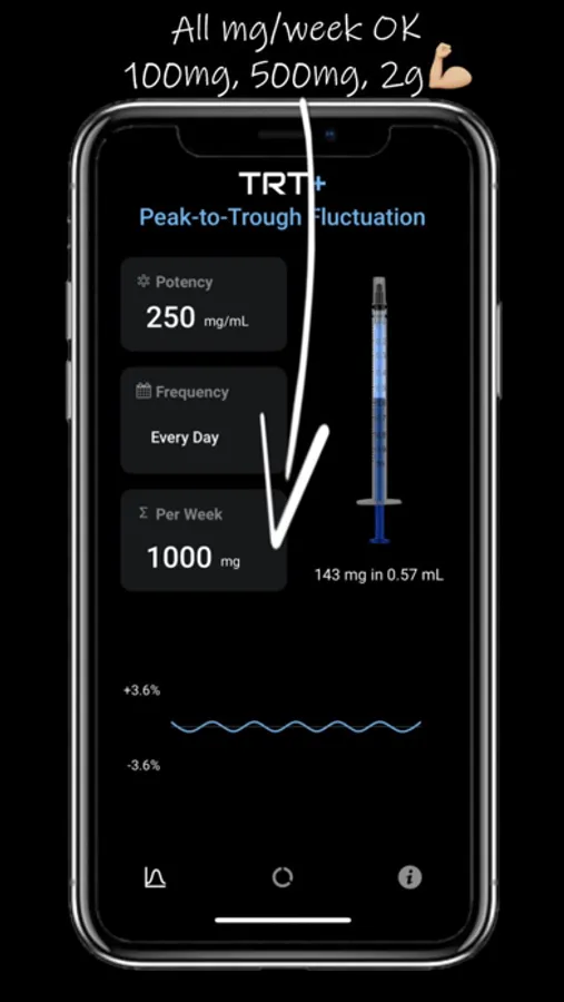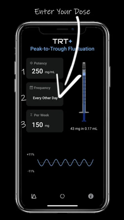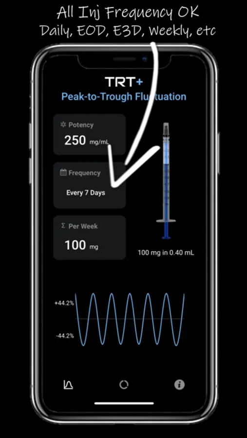 Peak-to-Trough fluctuation that shows your estimated testosterone level fluctuation using pharmacokinetic formulas, based on your dose and administration frequency.