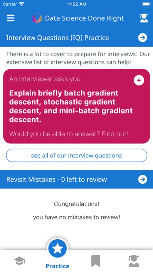 Our Data Science Interview app doesn't just give you the interview question and answer, it gives you ALL of the context and in-depth knowledge you would need to discuss the topic in a "real" interview situation.