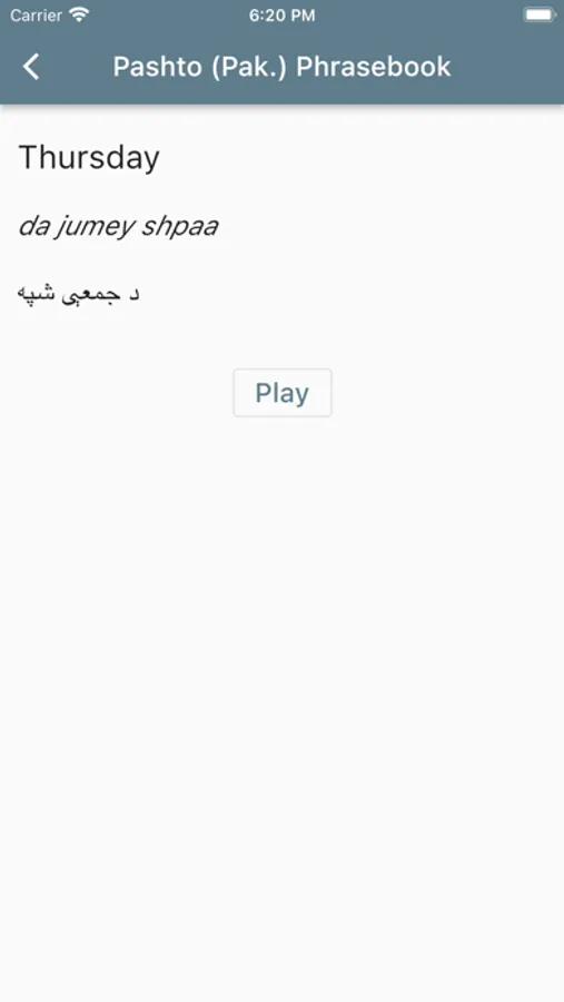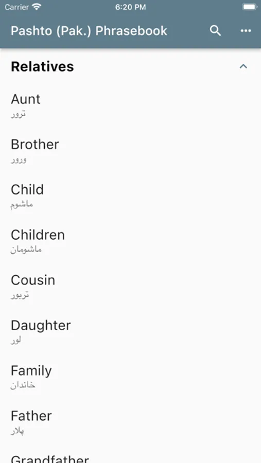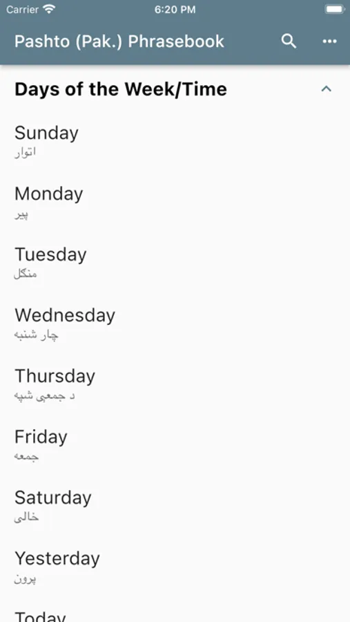 Using this app, you can select an English phrase and view its translation and how to pronounce it in Pashto.