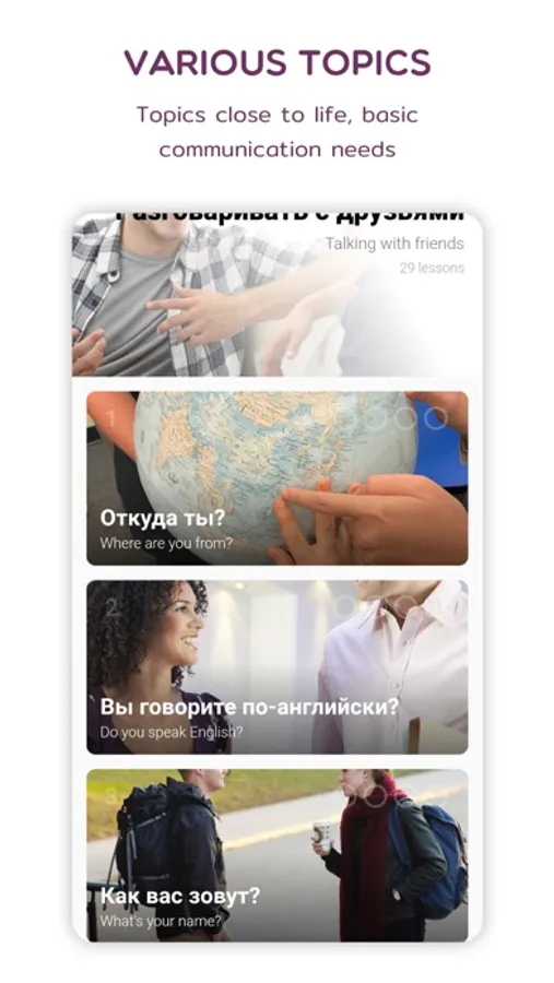 Our app is designed for anyone who wants to improve their Russian skills quickly and effectively. Whether you are a beginner or an advanced learner, our dynamic and immersive approach to language learning is perfect for you. Plus, with our convenient and interactive platform, you can access our audio and video lessons from anywhere, anytime, so you can practice and improve your Russian skills at your own pace.