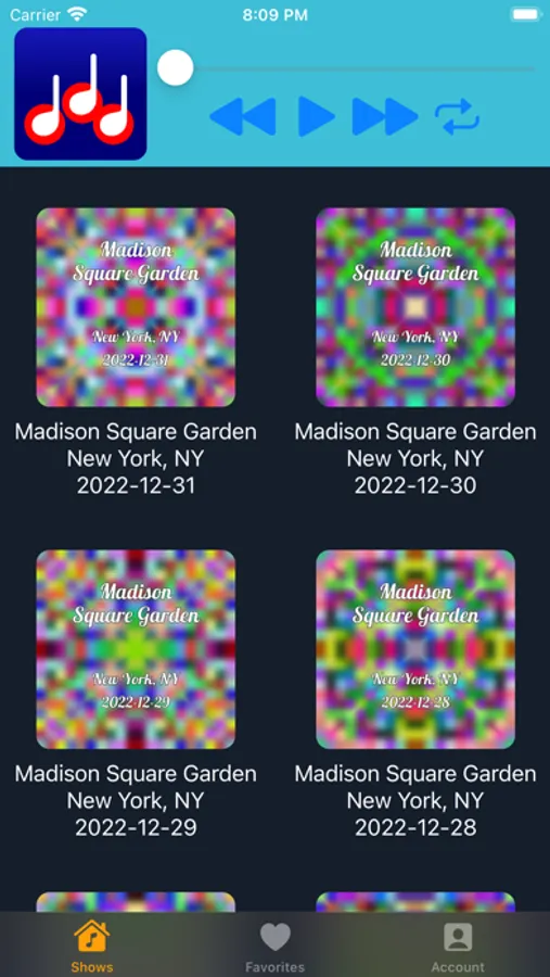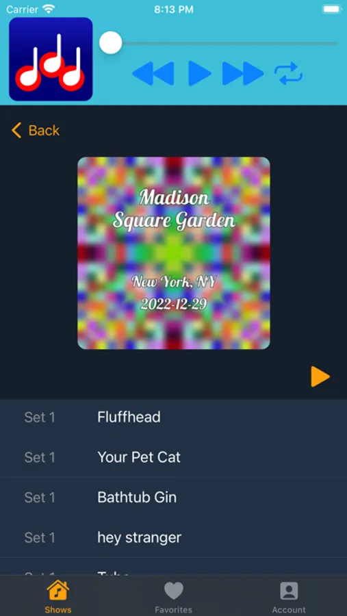 A free taped phish streaming app developed by one person to help make access to one of the all time great bands easier than ever. Create an account and while you explore the catalog, favorite individual shows to go back to later.