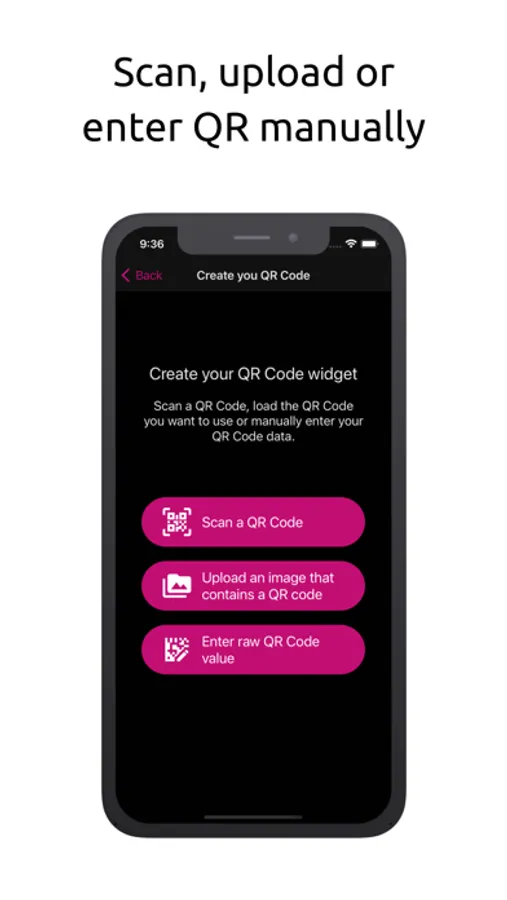 SCAN, ENTER, OR UPLOAD: With QRwidget you can scan an existing QR code, manually enter data, or upload a picture of a QR code. QRwidget makes the process seamless and effortless.