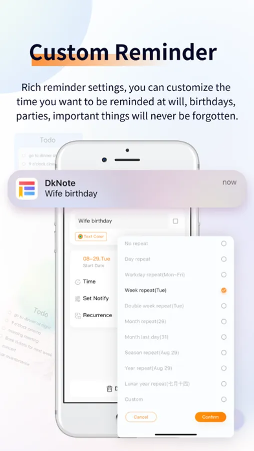 Rich reminder settings, you can customize the time you want to remind at will, birthdays, parties, important things will never be forgotten