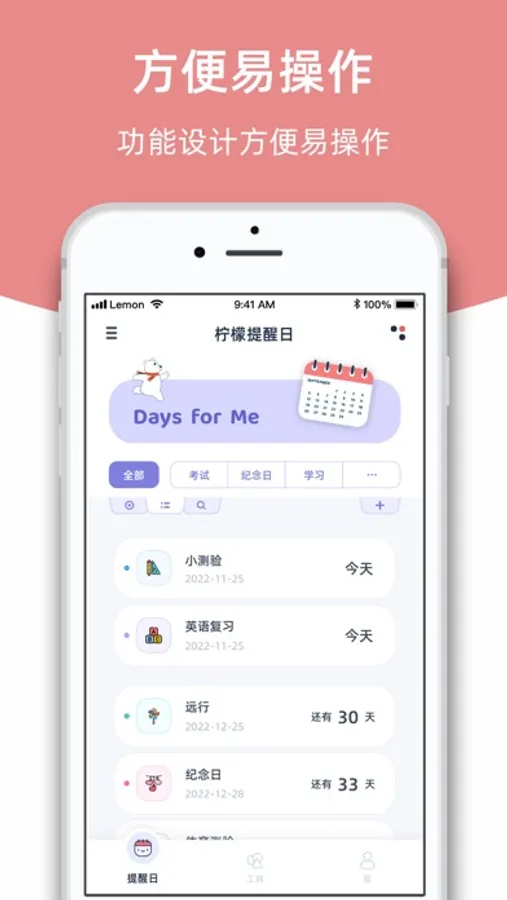 柠檬提醒日是一款用于记录生活中重要日子的App,可以用于记录: