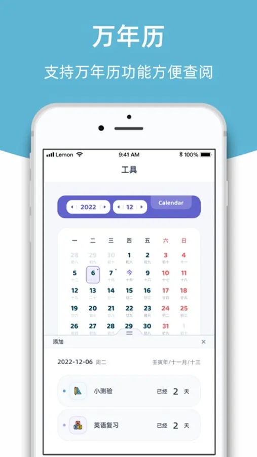 * 公历和农历都支持;