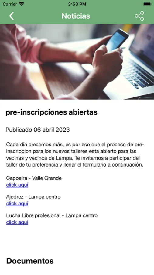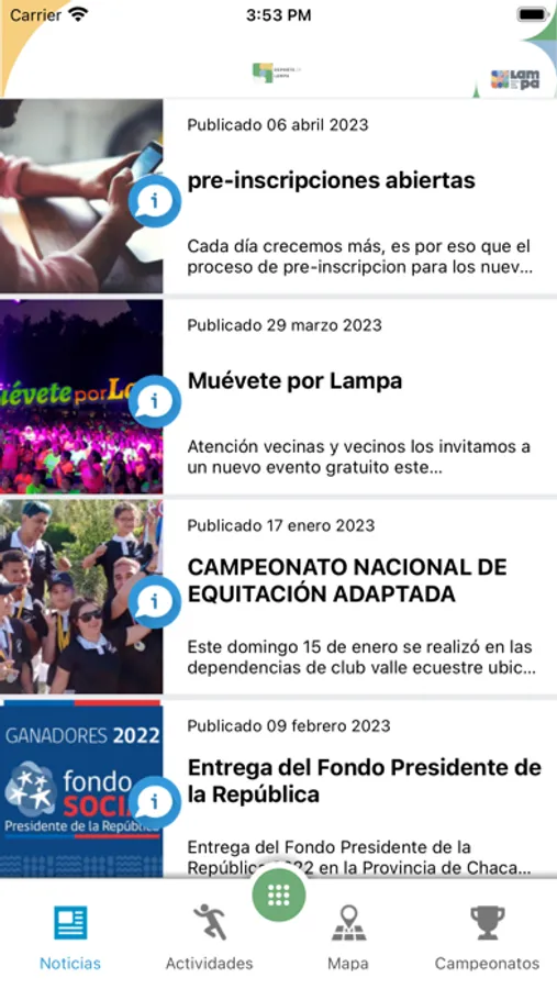 Aplicación de Lampa para la administración de noticias, actividades y talleres