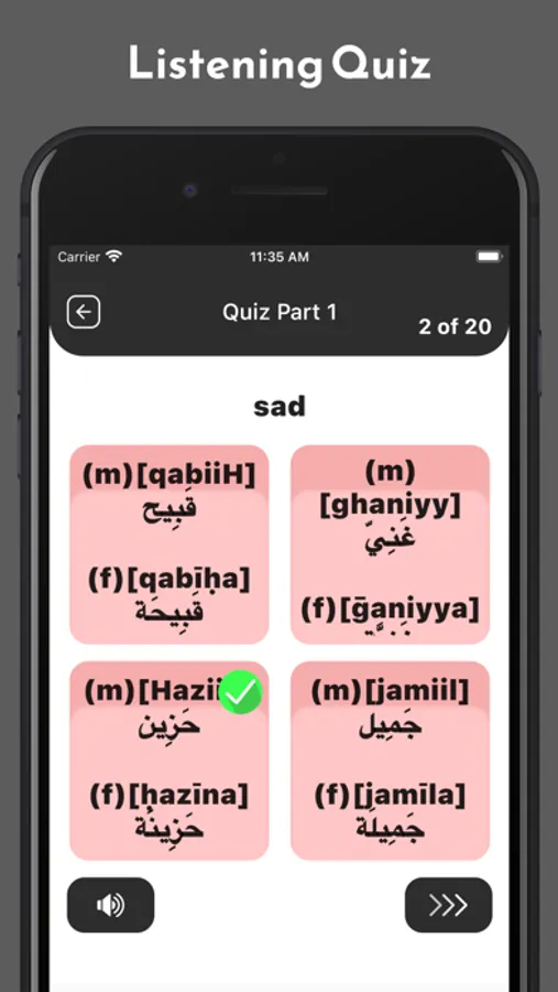 The app also provides audio recordings by native Arabic speakers, so you can practice your pronunciation and listening skills. Additionally, there are quizzes and exercises to help you reinforce your learning and track your progress.
