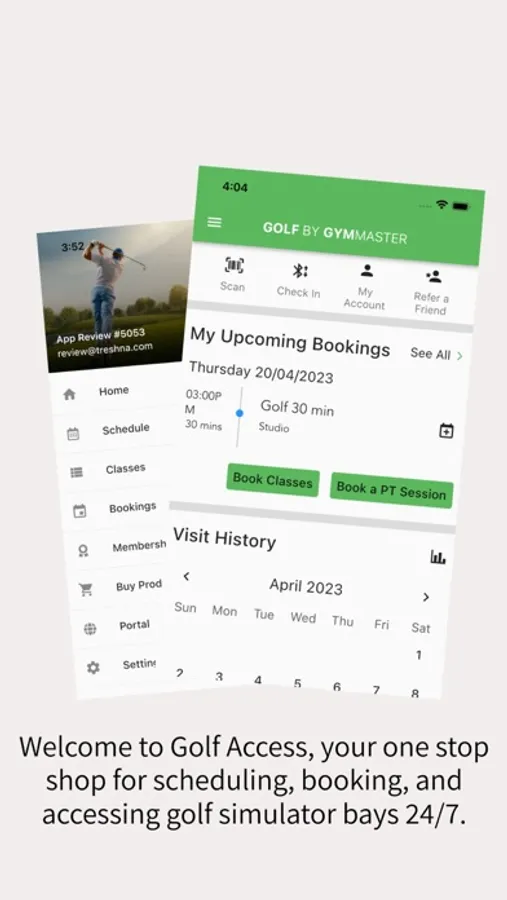 Welcome to GolfAccess, your one stop shop for scheduling, booking, and accessing golf simulator bays 24/7. With our app, you can schedule time for tee-offs and golf tutoring anytime, anywhere.