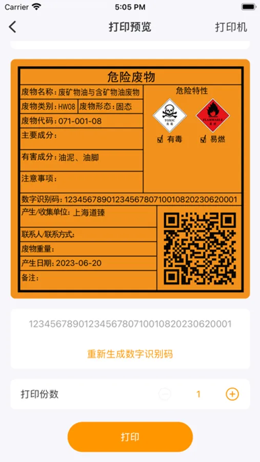 【危废标识管理】是由上海道臻信息技术有限公司开发的一款针对危险废物标识进行管理和打印的软件系统。