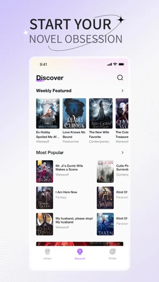 Take your pick from an extensive range of genres. Whether it's a captivating romance or a heartstopping thriller you're craving, Novellair can satisfy you. Tickle your reading fancies with something new or stick to your favourite themes - whichever you choose, we have what you need.