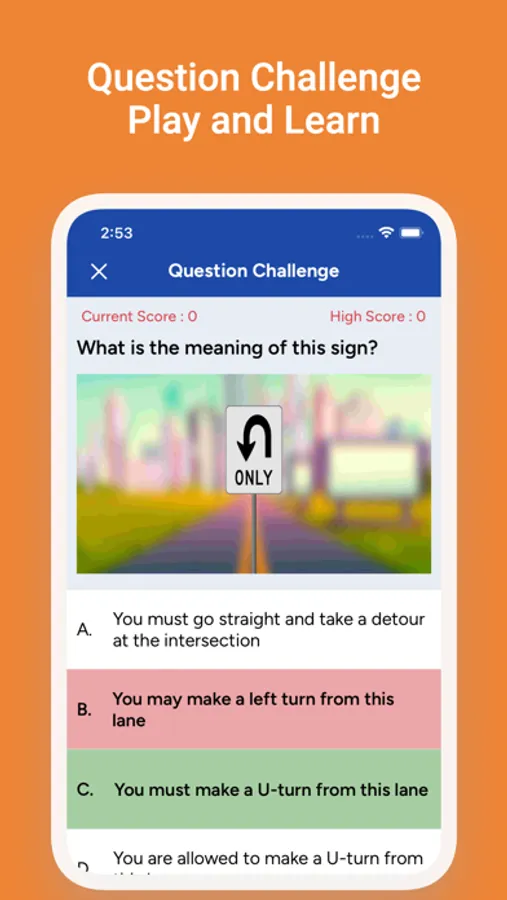 This is a unique feature of our application. It allows you learn while playing a challenge game. Your score will go up by one point each time you correctly answer a question up until the point where you get it wrong. It keeps record of your high score.