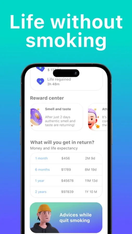 - Statistics and Achievements: The application provides you with statistics about your progress and achievements in quitting smoking.