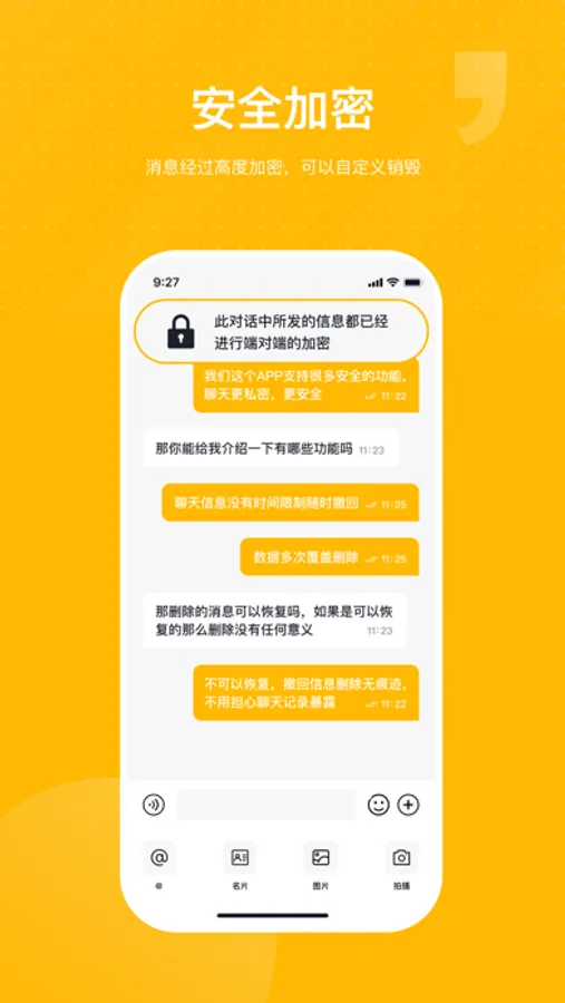 【安全加密聊天】采用国内外领先的加密技术,所有消息都经过端对端高度加密,充分保障信息的安全