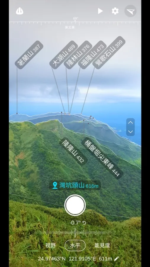 • 自訂GPS座標:自訂座標後,可以重任何想去的地點來觀看群山