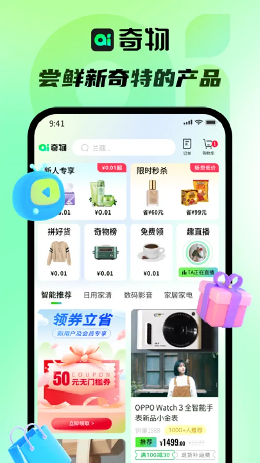 奇物APP,致力于将娱乐社交的元素融入电商运营中,通过“社交+电商”的模式,让更多的用户带着乐趣分享实惠,享受全新的共享式购物体验。