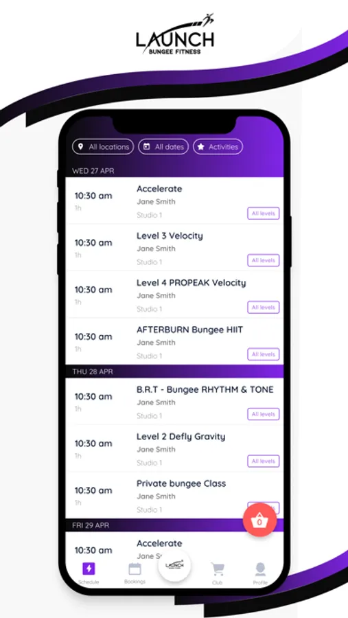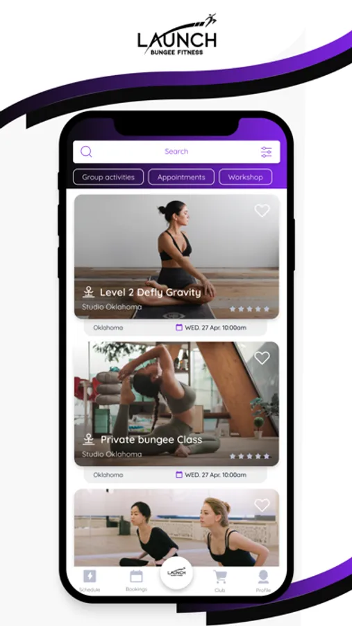 Download the Launch Bungee Fitness app to easily book classes and manage your fitness experience all from your device. Make a reservation, get added to the waitlist, purchase class packages, check your profile and membership status, keep up to date with the latest products and services, and more!