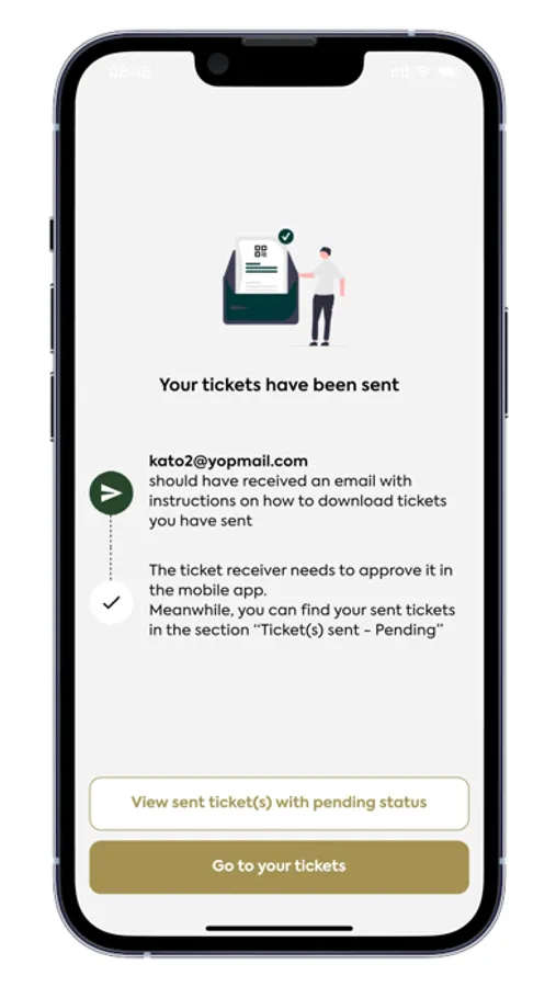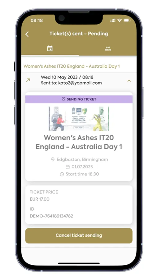 After your guest has downloaded the Hospitality Edgbaston ticket wallet and registered using the e-mail address you have entered, the ticket you have transferred to them will appear in their My Tickets tab.