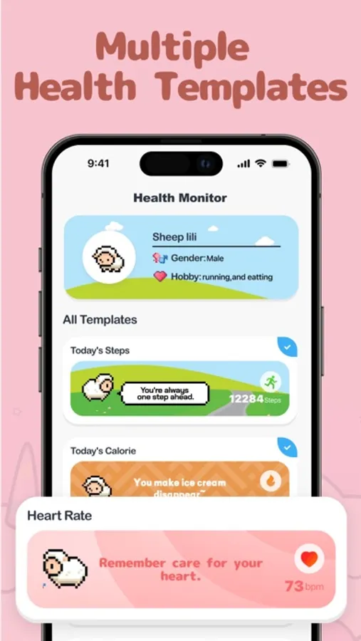 Users can customize their pixel pet, edit the healthy notifications, create the own health pet friend.