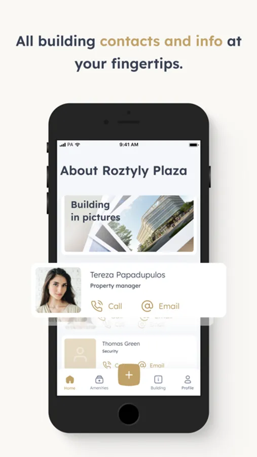 This application is intended not only for employees that work in Roztyly Plaza but for their visitors as well. Important information about the building is organized on the dashboard, which dynamically changes throughout the day. The app offers more functionality including forums, ability to request maintenance, events, information about companies in the building and about the building itself where you can find important contact, guides and documents.