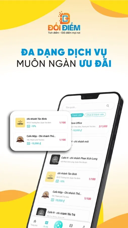 Đổi Điểm là ứng dụng tích điểm - sử dụng điểm đa thương hiệu, giúp bạn có thể ăn uống, mua sắm thả ga và tận hưởng nhiều dịch vụ với chi phí vô cùng tiết kiệm và thao tác cực kỳ đơn giản.