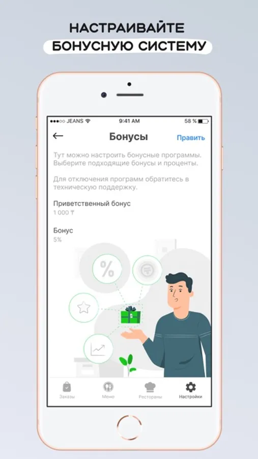 Приложение позволяет управлять бонусами, которые будут получать ваши клиенты за разные события автоматически, а также начислять бонусы по решению пользователя в случае негативного отзыва со стороны Гостя.