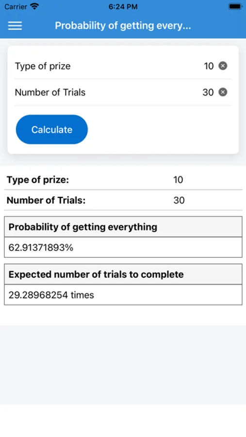 You can easily check the probability of completing the lottery with 10 types of prizes when you draw 30 times.