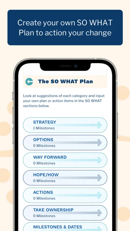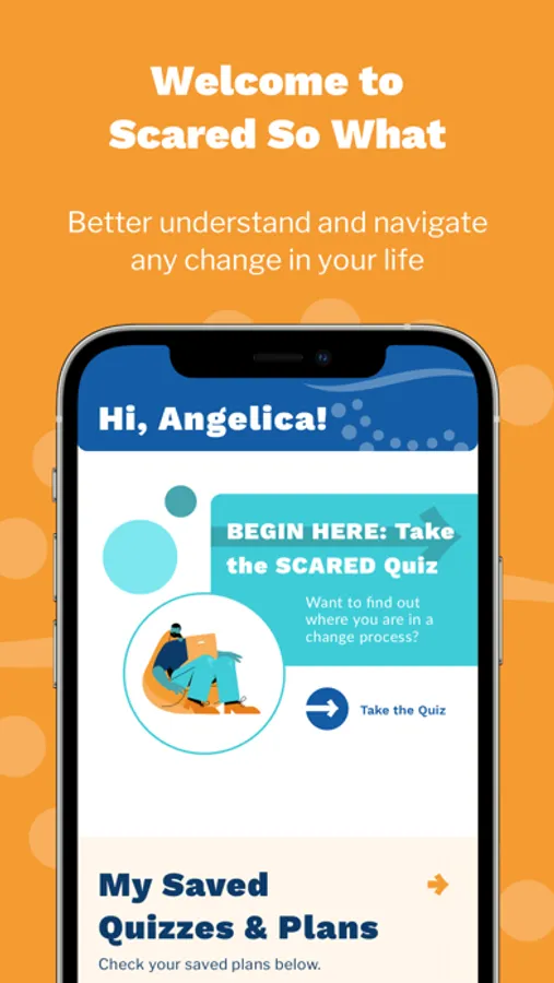 The first part of the app is a series of videos where you can learn about personal change and how you can manage it. Watch the videos to ensure you have an understanding of what is personal change and how SCARED SO WHAT can help you.
