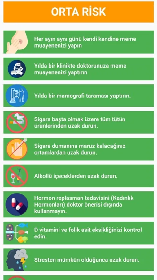 ORTA RİSK: Sonucunuzun orta risk çıkması şu anda bu hastalığı düşündüren risk faktörleri ve belirtilerine sahip olmadığınızı göstermekle birlikte ilerde bu hastalığa yakalanabileceğiniz bazı belirti ve risk faktörlerini taşıdığınızı gösteriyor. Tavsiye ettiğimiz önerileri uygulayarak risk düzeyinizi ciddi oranda düşürebilirsiniz.