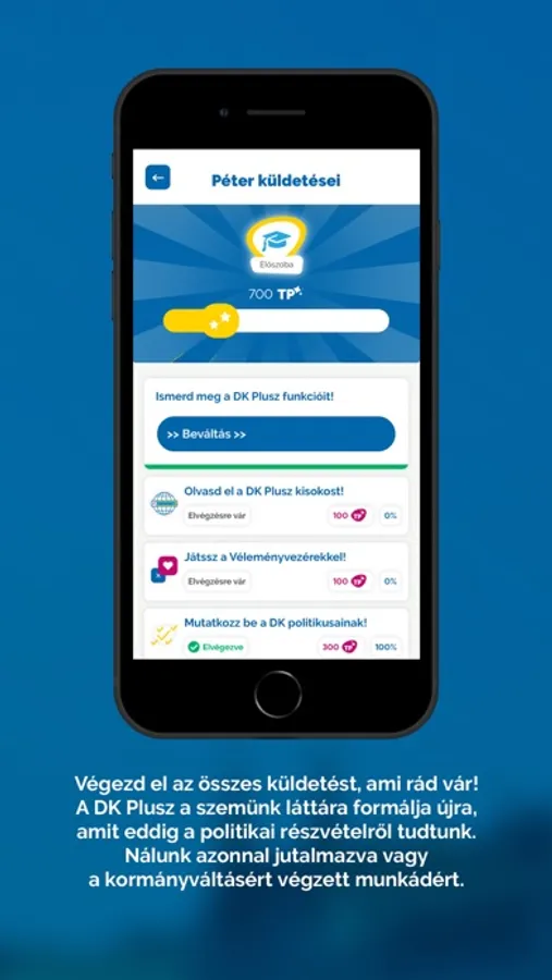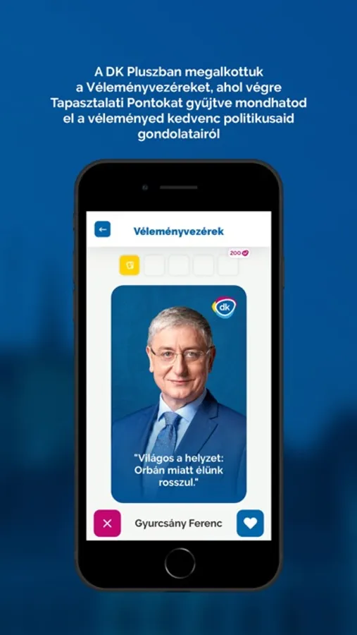 A DK Plusz mobilalkalmazás a szemünk előtt formálja újra, amit eddig politikai aktivitásnak hittünk. Alapjaiban gondoltuk újra az erről alkotott képünket, ezért életre hívtuk Magyarország első és egyetlen olyan közösségét, amelynek tagjai azonnal jutalmazva vannak a kormányváltásért végzett aktivitásaikért.