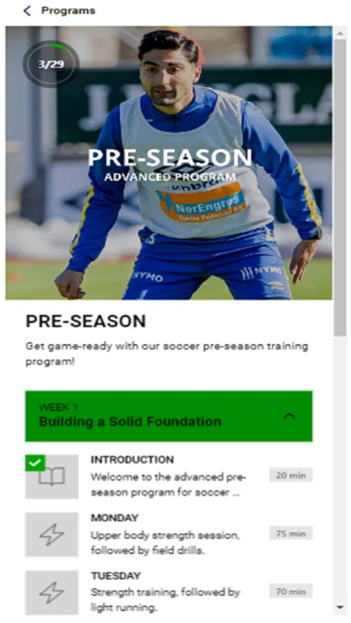 Our pre-season, in-season, and off-season programs are designed by top physiotherapists, medical doctors and strength & conditions coaches to help you get in the best shape of your life. From drills and exercises to nutrition and injury prevention tips, our app has everything you need to stay on top of your game year-round.