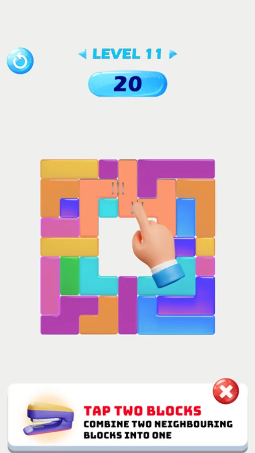 Challenge yourself to remove all blocks in as few taps as possible by finding the best combinations.