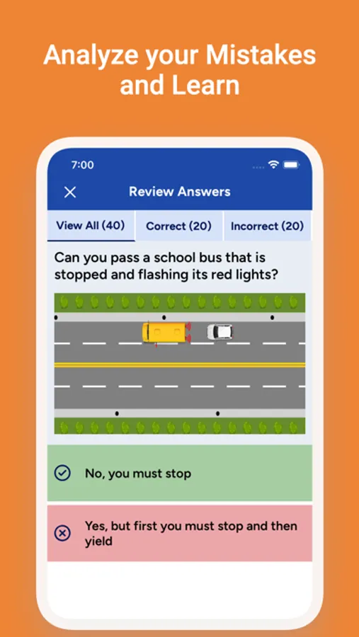 You will get the test result based on the official criteria to pass the Driver’s License Test. You will also be able to find out what questions you've done wrong after taking the test.
