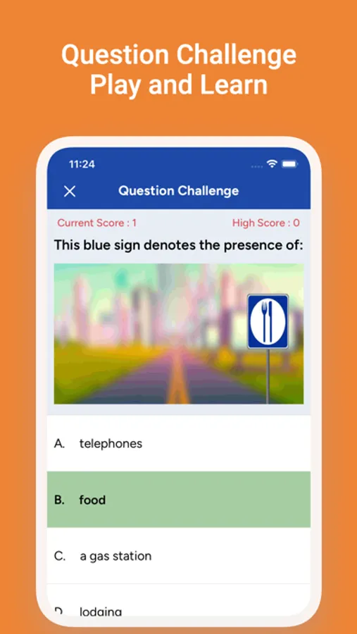 This is a unique feature of our application. It allows you learn while playing a challenge game. Your score will go up by one point each time you correctly answer a question up until the point where you get it wrong. It keeps record of your high score.