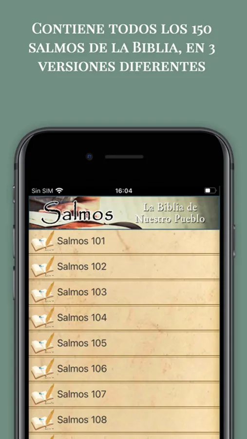 Esta aplicación contiene todos los 150 salmos de la Biblia, en 3 versiones diferentes dispuestos en una aplicación pequeña, rápida y fácil de usar y con posibilidad de escucharlos.