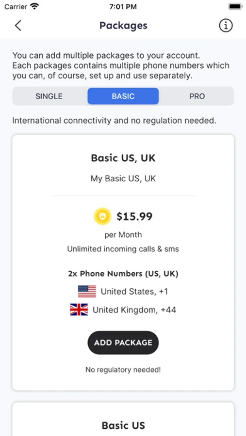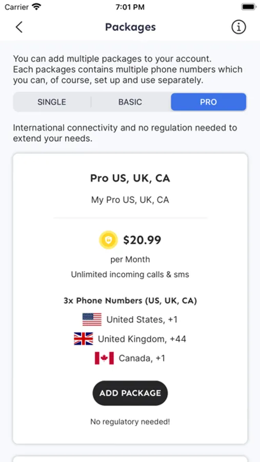 We provide International connectivity with our phone numbers. You can use second numbers around the world for register on websites and Apps, online verification, 2FA, or traveling. Discover the power of virtual second phone numbers to enhance privacy. Buy phone numbers from USA, United Kingdom or Canada and use it as your second number. These phone numbers don't have any regulatory so no need to provide a proof of your identity.