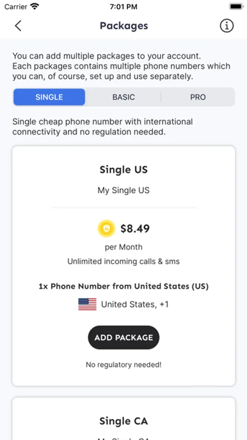 We provide different 2ND number packages. Choose virtual numbers from United States, United Kingdom or Canada. All of our second phone numbers come with free and unlimited incoming SMS & calls. They a perfect for online SMS and call verification.
