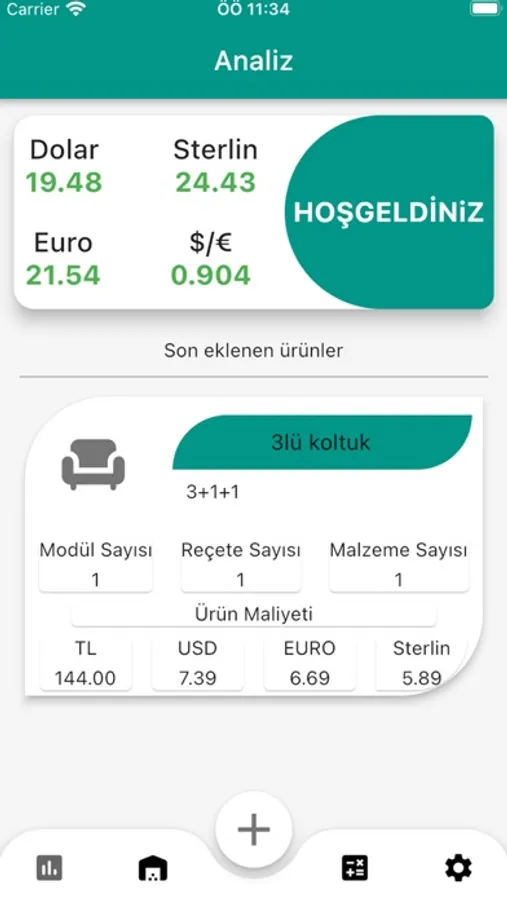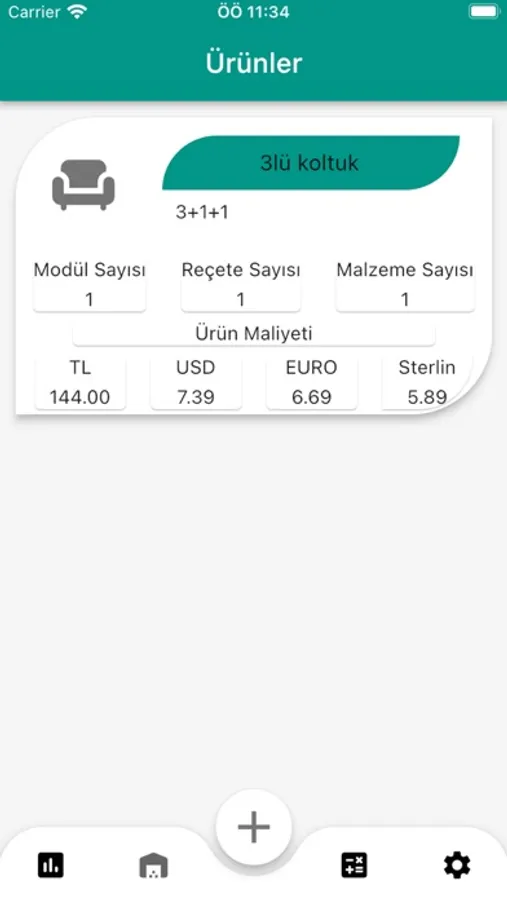 Ürün,modül,malzeme tanımlama ve maliyet hesaplama