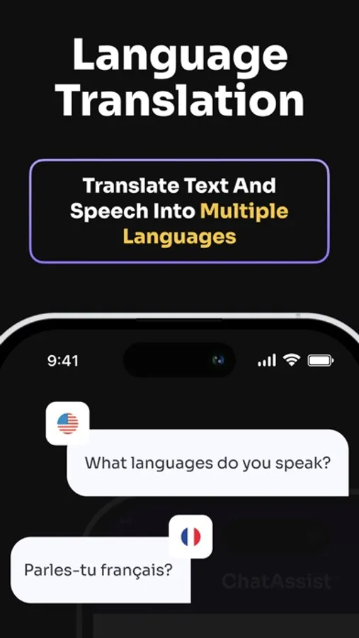 With Chat Assist, language is no barrier. Chat in any language. Practice, translate, or learn new languages effortlessly.
