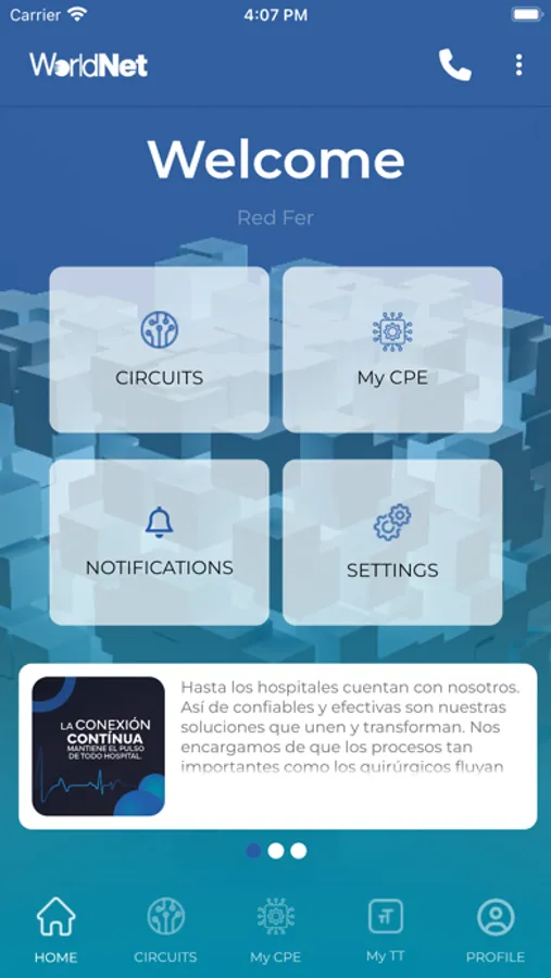 This application is designed to maintain real-time control over the servers and nodes that we are controlling. Alert through notifications if there was a fall to be able to act instantly. It also allows direct contact with the service provider in case of any technical query.