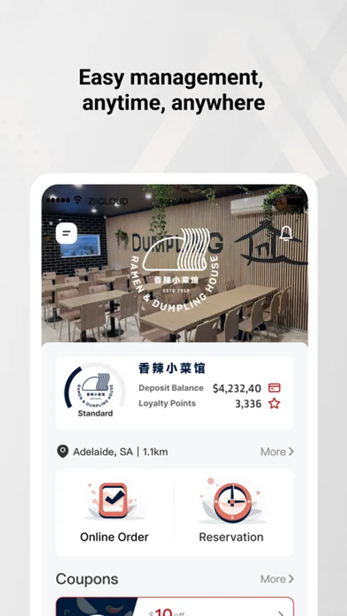 Manage your loyalty member information and enjoy a variety of member services (points, coupons, birthday gifts, event promotions, etc.) provided by Ramen & Dumpling House. Follow your consumption information in real-time.